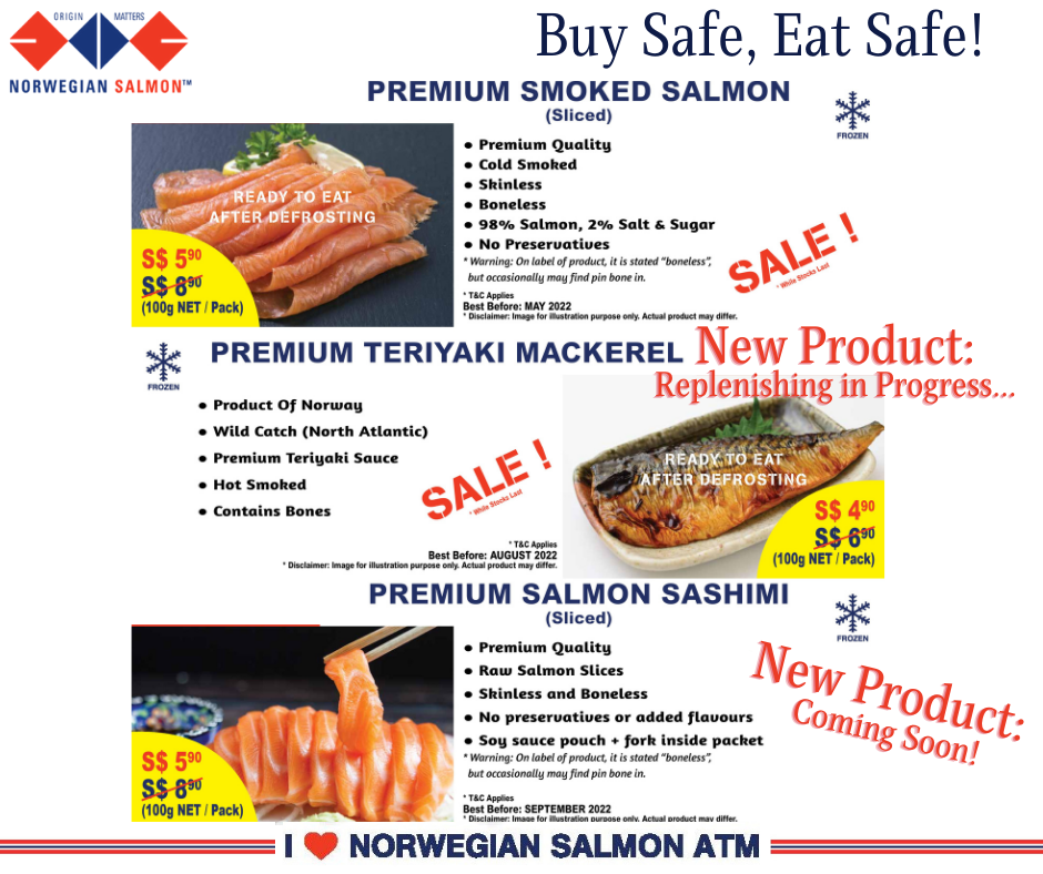 You may have chanced upon these vending machines that dispense Norwegian salmon. They started off selling salmon for cooking, but have since expanded their product line to include sashimi-grade salmon. The salmon also comes vacuum sealed and frozen so you can store it in your freezer for a few months.