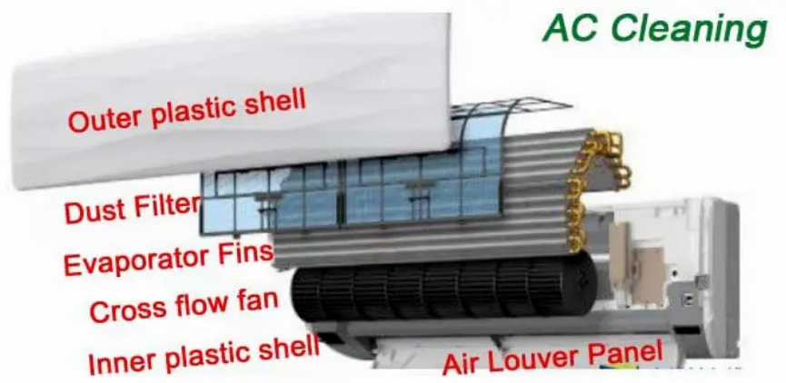 The drainage pipe discharges the water out of the AC. When the dust, debris and bio-slime accumulate, they will congest the drainage pipes the excess water will overflow and leak from the AC.