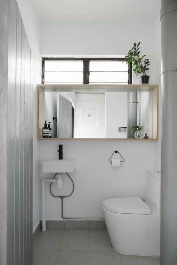 The common bathroom sports a minimalist look. The steel bathroom door was retained for its old-school charm that is hardly found in flats nowadays.