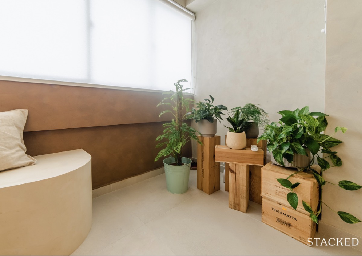 During their renovation, there were many times they felt decision fatigue, and Colin further shared an instance of this. "We were trying very hard to find the right side table that we wanted. After sharing with Serene, she suggested painting some crates in the same colour as our walls - and we loved the outcome so much!"