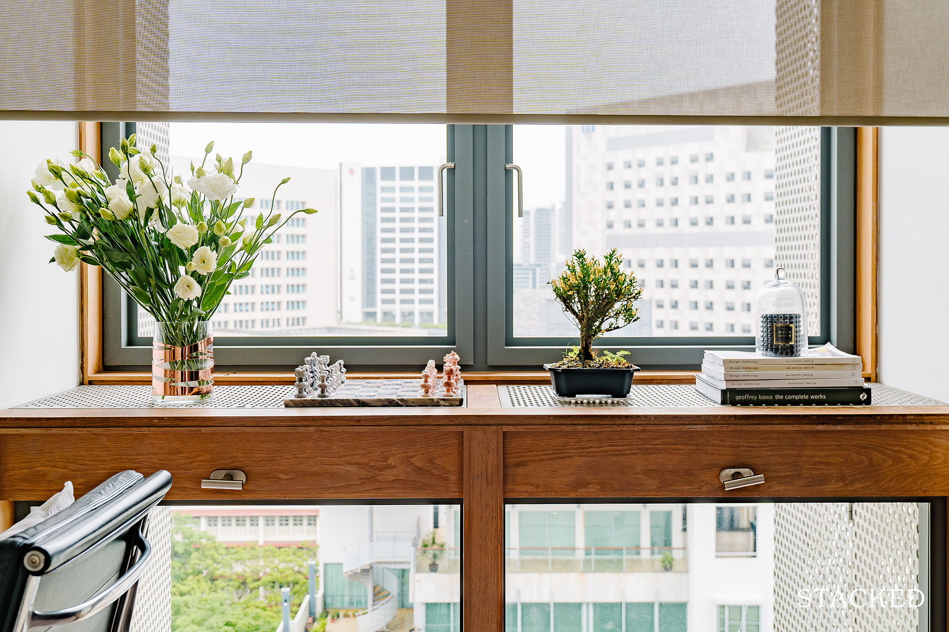If you haven’t noticed it yet, the use of pendant lighting helps draw the eye upwards, emphasising the good amount of vertical space the home has. The soft light also creates a cosier ambience at night, which goes well with the vibe of the home.