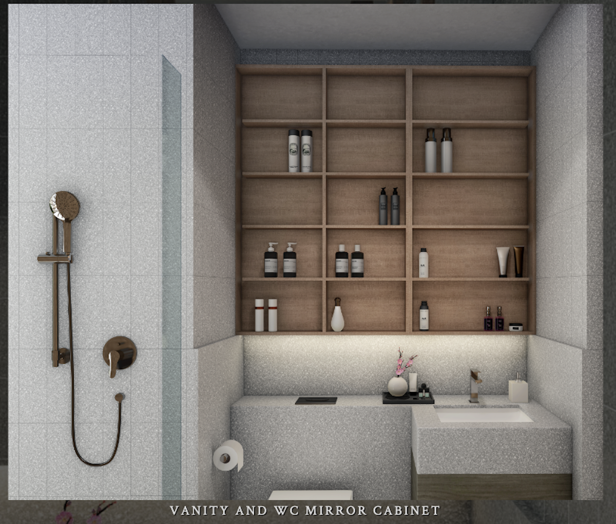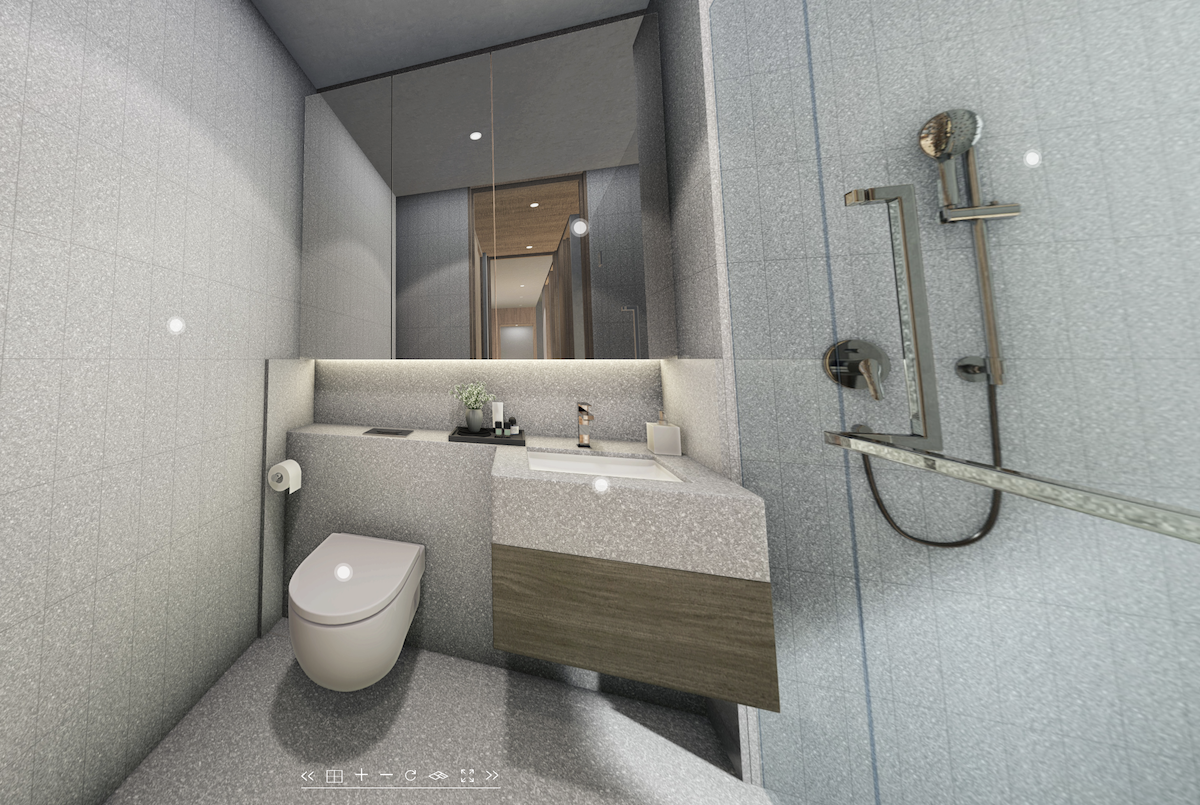 The designers chose to utilise the wall space in between the study room and bathroom with a statement shelving piece. I thought it was a rather authentic Japanese feature, and future homeowners can opt to design their units in the same fashion.