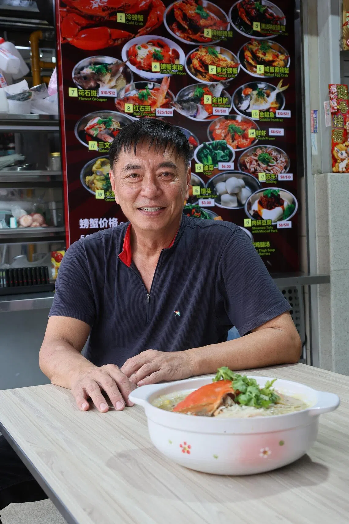His bestseller is Crab Mee Hoon. Crabs cost $40 each (500g to 600g), with customers choosing how they are cooked. Options include Chilli Crab, Black Pepper Crab and Salted Egg Crab.