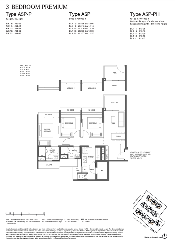 With regards to the show flat, features the Type A5P layout, which is sized at 969 square feet without the strata void.