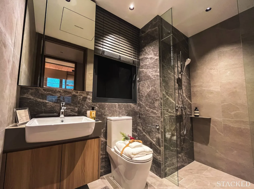 The bathroom is sized at 4.1 sq m, which is quite spacious for a compact unit. While this might be a more subjective view, I did feel that the bathroom had a more luxurious look in comparison to other ECs.