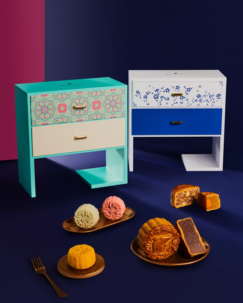 As a nod to the hotel's signature cocktail, there's the Mini Valrhona & Plantation 1840 TruffleMooncake – which combines a chocolate filling with a rum-flavoured truffle. The red and robin blue box variants both feature a design inspired by nearby architectural icons: the Capitol building, and CHIJMES.