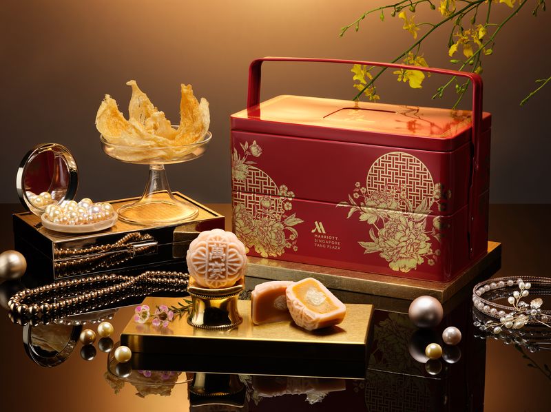 Other decadent faves, like a Champagne-infused truffle snowskin mooncake that’s paired with, what else, Raffles-exclusive Billecart-Salmon Champagne Brut Reserve, return as well. Comes in an iridescent cream-gold metal box with floral motifs.