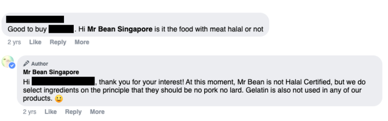 While Mr Bean's certification appears to be a recent development, it has previously mentioned that it it does not use pork, lard or gelatine in any of its products.