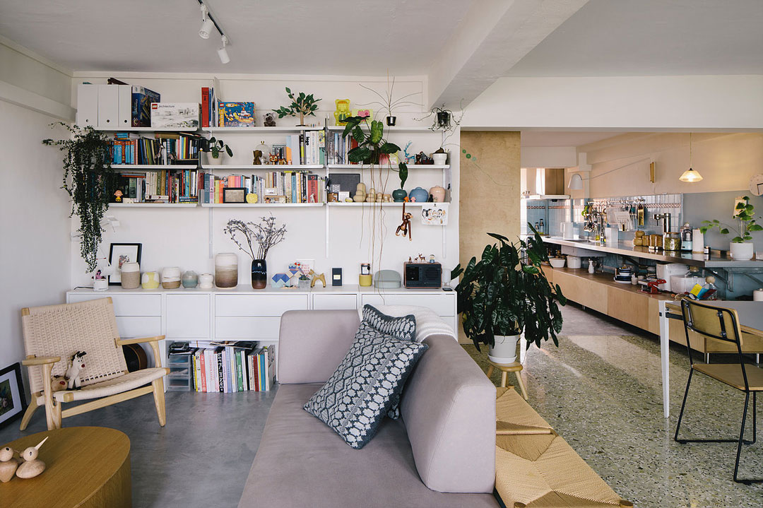 For closed kitchen layouts, doing up a separate dry kitchen area outside your existing closed kitchen gives you an open kitchen area that you can use as a communal hub.