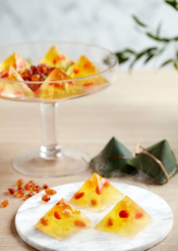 Technically, not a rice dumpling, but still pyramid-shaped, these little jelly treats ($8.40 for three) from Crystal Jade are a great way to end your dumpling binge on a sweet note. It comes studded with nourishing peach gum, wolfberries and tangy yuzu peel. Available till June 3, 2022.