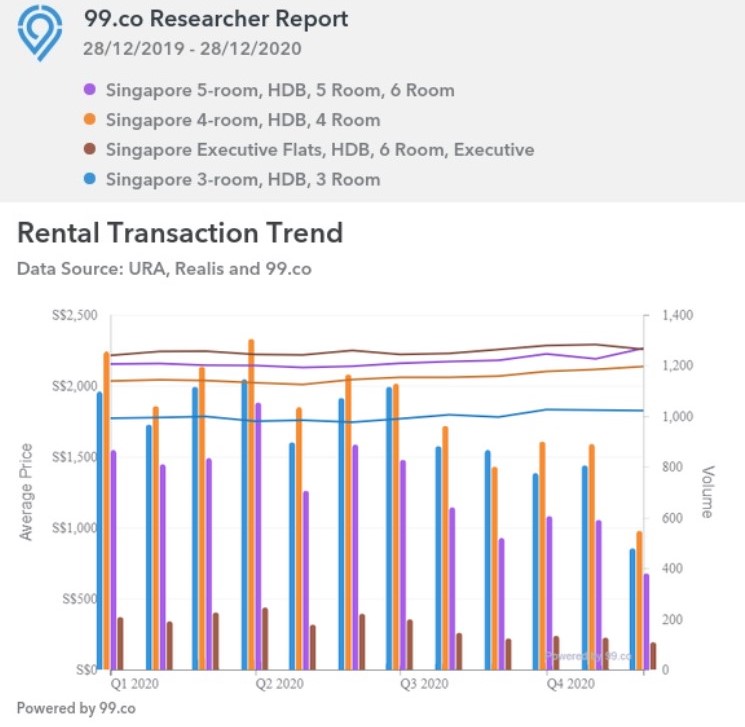 As such, even the average rental income from a 3-room flat is sufficient to cover the mortgage interest, plus the maintenance fees of a condo.