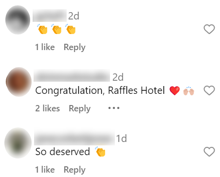 In the caption, the managing director of Raffles Singapore, Christian Westbeld, also mentioned that they are "humbled and excited to have found a place among this esteemed collection of outstanding and beyond the everyday luxury hospitality destinations".