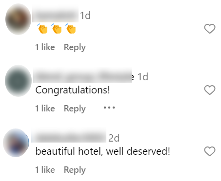 In the comments section, netizens congratulated the hotel for its win.