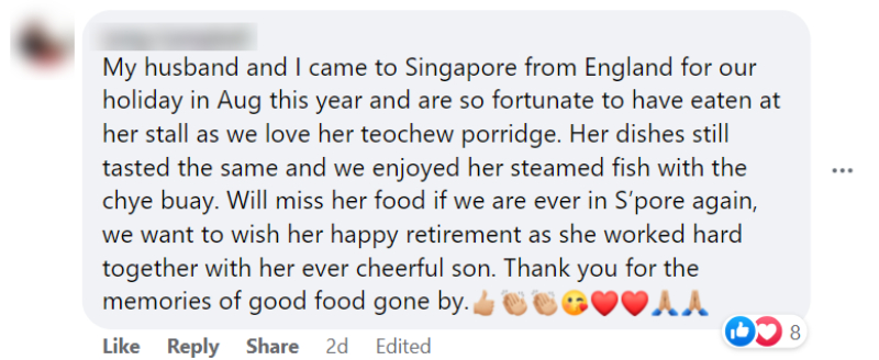 In their most recent Facebook post on Nov 4, they also shared that the stall had already closed for some time because of ah ma's health conditions.