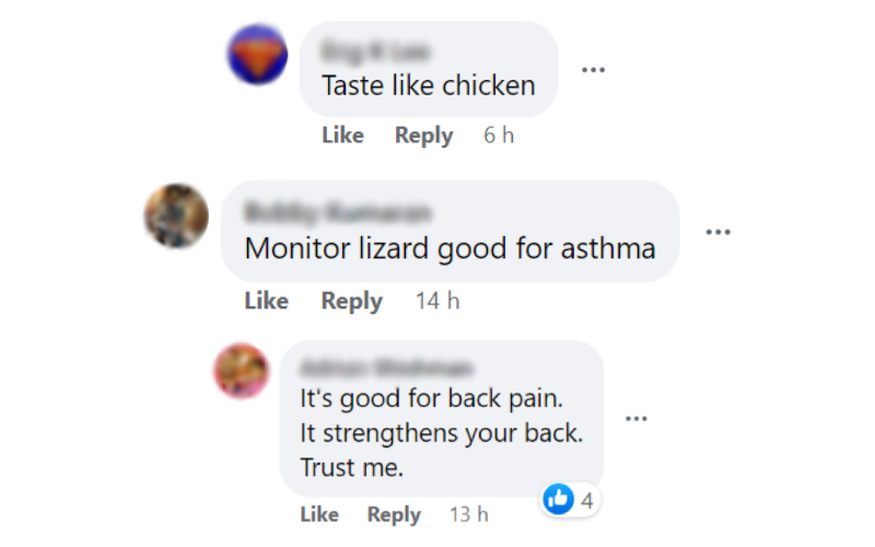 However, there were some in favour of eating monitor lizards, with a user claiming it “tastes like chicken” and others claiming health benefits provided by the meat.
