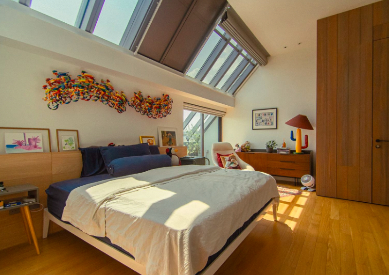 It was one of the first things you'd notice as you enter the bedrooms, that lovely slanted glass roof. Its higher than normal ceiling coupled with the unique slant makes the room feel so much more open and bright — quite unlike any other newer condo that you might find in Singapore.