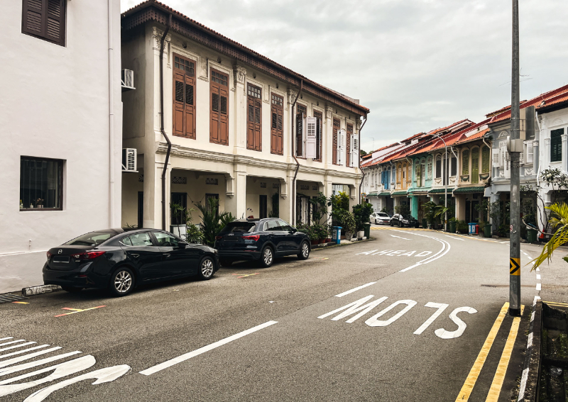 Now the houses here are so beautiful, and so diverse in architectural styles (ranging from Chinese and Malay to Art Deco and Modern), that I could flood you with endless photos of the area, but I figure it'll be more helpful to show you the rest of the neighbourhood, so I'll just leave you with these two photos of the roads between the houses.