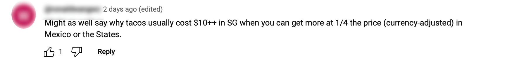 To illustrate his point, he mentioned that tacos usually cost S$10 in Singapore, but in Mexico, you can get it at a quarter of the price.