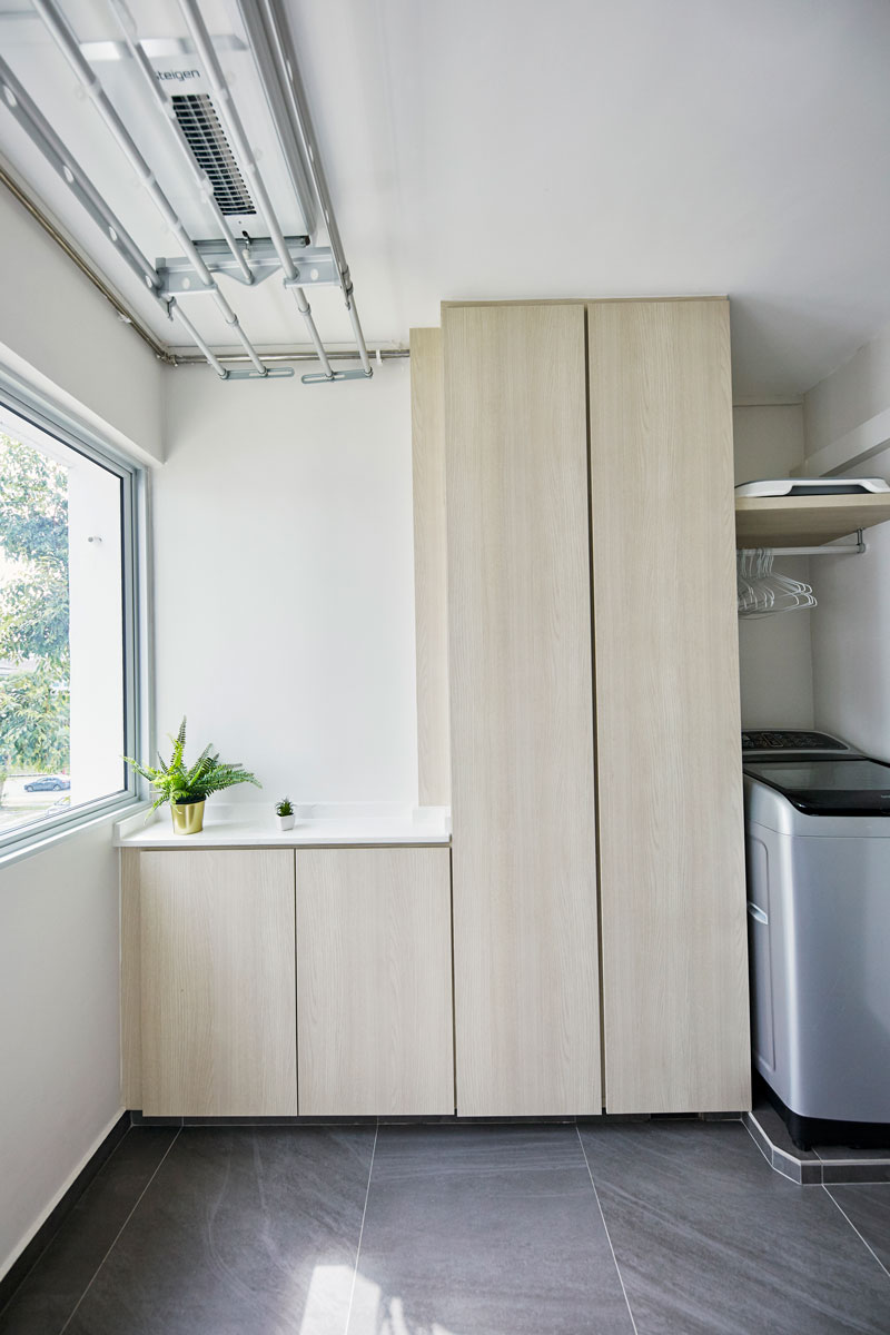 Today’s BTOs offer standard indoor laundry racks, which are safer but no less tedious, requiring manually pulling the rack up and down. And if you aren’t blessed with an abundance of sunlight and ventilation in your service yard, there’s not much hope in your clothes smelling clean and fresh.