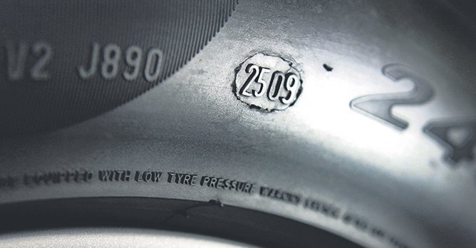 Look for the tyre's manufacturing date to get a sense of its life span. They're the last four digits imprinted on the tyre wall. The first two digits represent the week of manufacture, with numbers ranging from "01" to "53", while the last two digits represent the year.