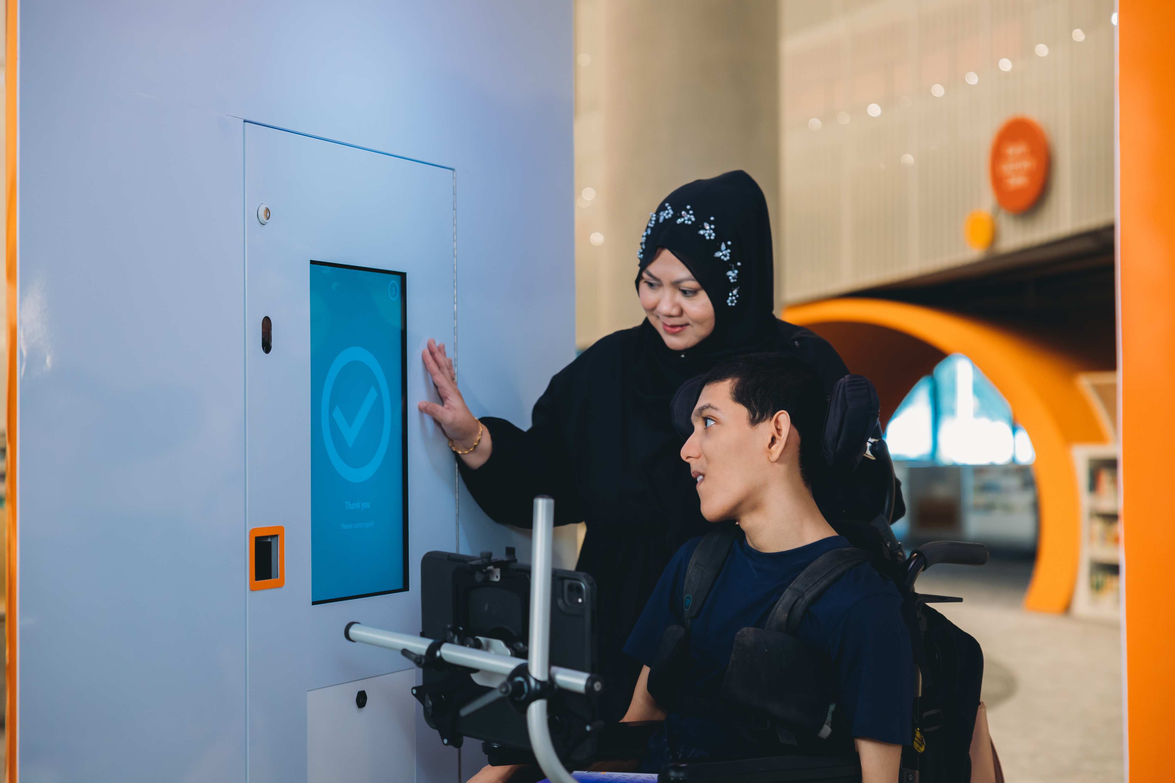 The Punggol Regional Library was also developed with the disabled community in mind, with plenty of accessible features. There are assistive technology devices such as coloured keyboards with larger keys to assist people with visual impairment, and wheelchair-accessible book borrowing stations. The new Borrow-n-Go station allows wheelchair users to easily borrow books by passing through a dedicated passageway.