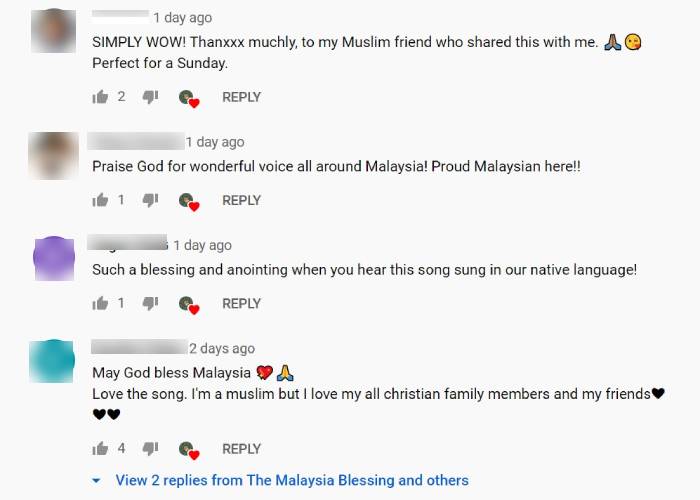 Malaysia's unique version of the song has drawn praise and admiration from YouTube commentators of various religions and nationalities, as well as support from Malaysians living abroad.