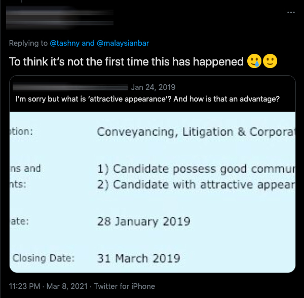 According to a tweet from 2019, this wasn't the first time a law firm had requested for an applicant with an attractive appearance in an ad. The advertisement was also amended after people took notice.