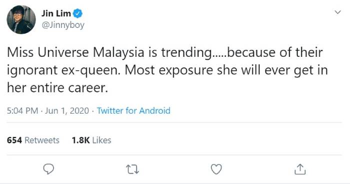 "Her ignorance and lack of self and privilege awareness do not reflect the Miss Universe Malaysia title and with this petition, we hope she will be stripped of her title. For someone who is so blatantly ignorant should not represent Malaysia in any capacity."