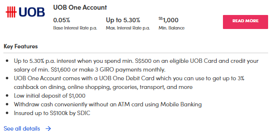 Among these cards, the UOB One Card is one of the best cards to pair with the UOB One savings account.