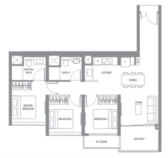 Unit size is the sticky issue – the three-bedders in question are 700 sq. ft. Some buyers will insist this is really a two-bedder, and hence not truly “family-sized”. Still, some smaller families may not mind. Do note the small size of the third bedroom, it really is only fit for a single bed and not much else.