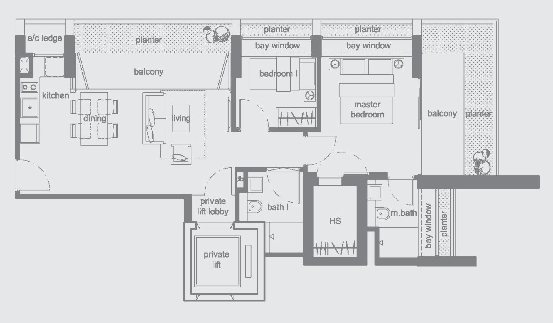 The other potential issue is that all the units there are 2 bedroom units as well, which means this development will always attract a niche audience. While it does come with the luxury of a private lift, the multiple planters and bay windows surrounding it will mean that the interior space will be smaller than the advertised 904 sq ft. The smaller common bedroom here will be another limitation too.