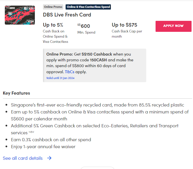 DBS Live Fresh has rebranded itself as Singapore's first eco-friendly card made from 85.5 per cent recycled plastic, and offering up to 10 per cent cashback at certain eco-businesses.