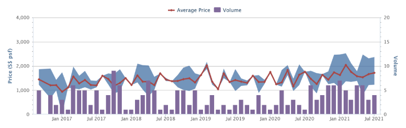 As of end-July 2021, freehold landed prices averaged $1,482 psf. This is up close to 11 per cent from the same time last year ($1,335 psf).