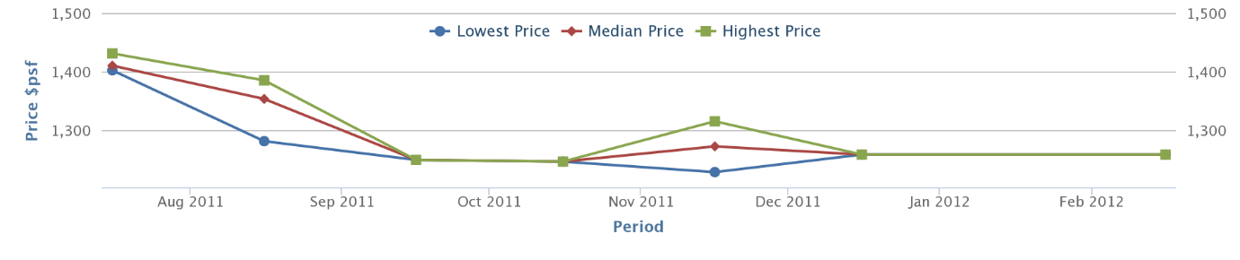 According to Square Foot Research, median prices currently stand at $1,394 psf.