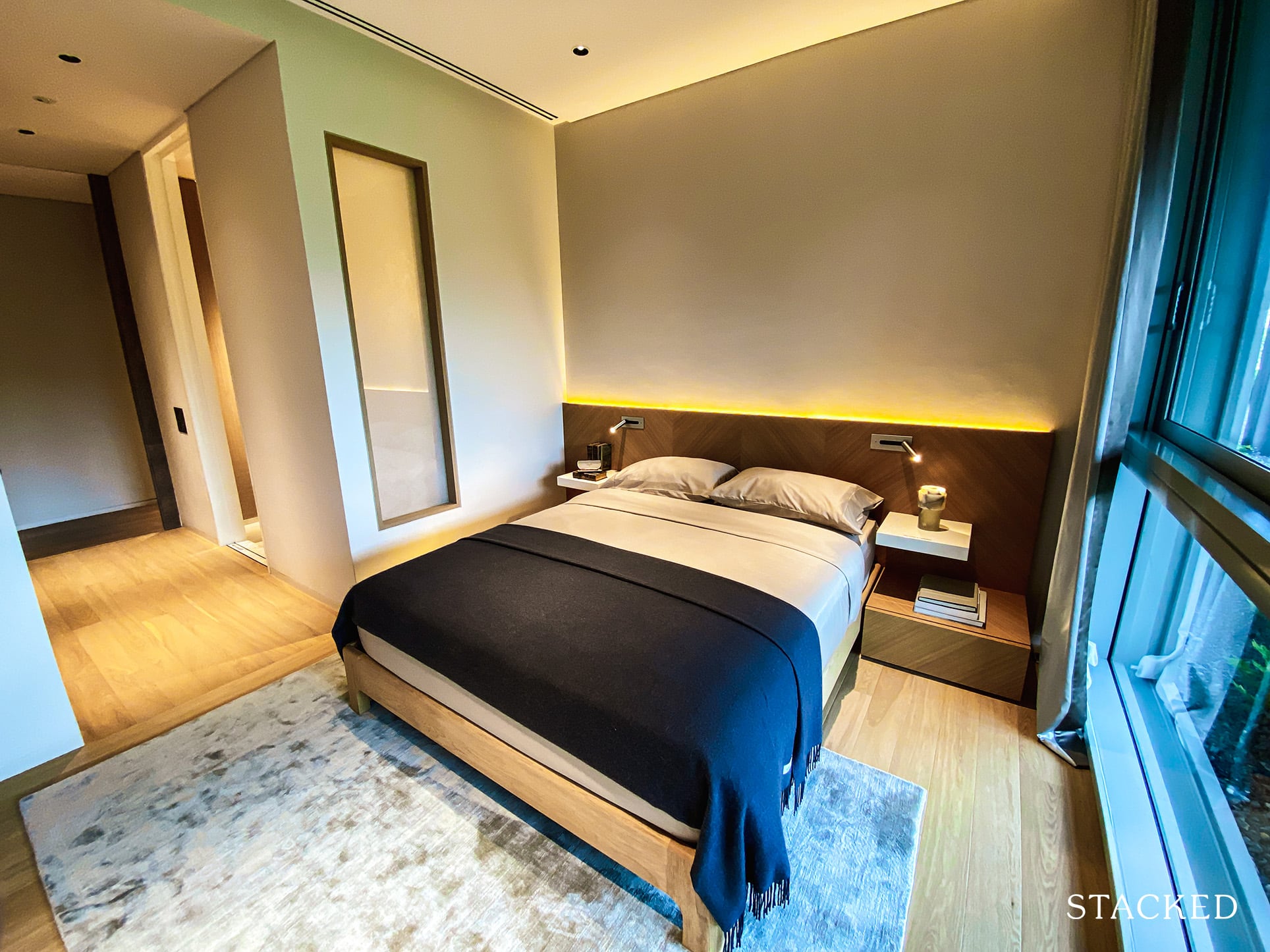 Each of the bedrooms features a long walkway, which does double up as storage on one side. While I’d normally refer to this as wasted space, in a place like this it does actually make sense – it gives occupants a whole lot more privacy.