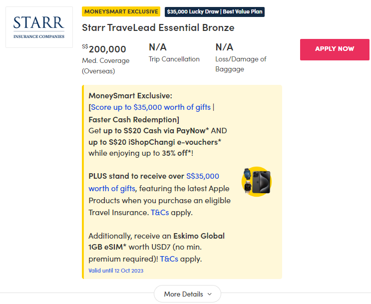 Starr TraveLead Comprehensive comes in three tiers: Gold, Silver and Bronze. While all are pretty comprehensive (as the name suggests), we advise you go for at least Silver. This affords you S$500,000 overseas medical coverage, as well as $250 coverage for Covid-19 related trip curtailments and cancellations — let's face it, these things may happen. You won't get this coverage in the Bronze plan, so go for Silver or Gold.