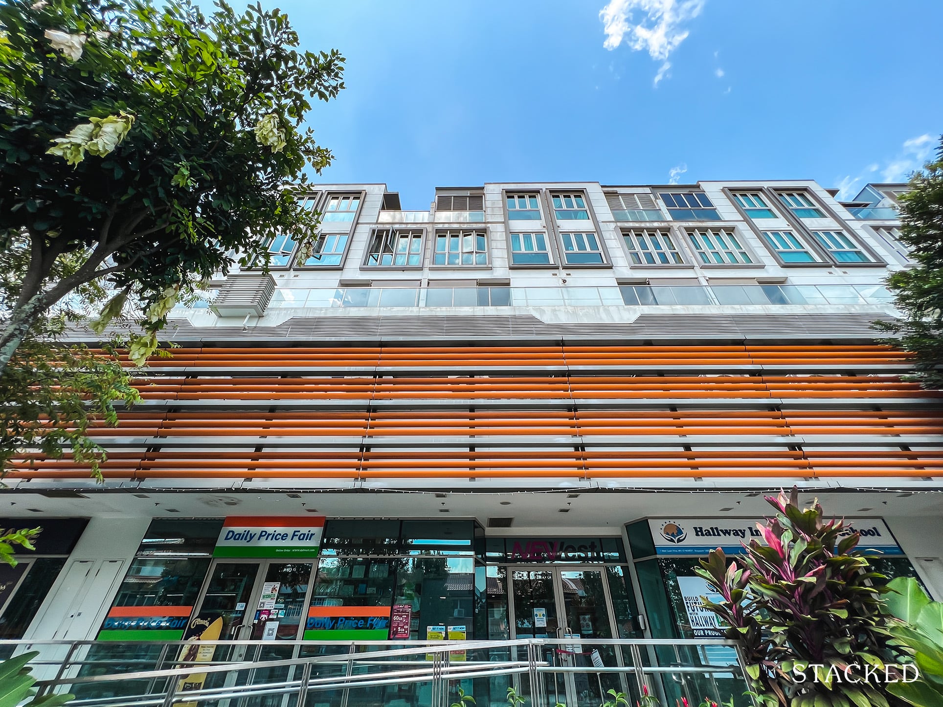 The land size is about 165,000 sq ft but, unfortunately, the townhouses are extremely cramped and built very close to each other. In terms of facilities, there is a swimming pool and a tiny gym (but no tennis court.) With 145 residential car park lots and 92 commercial i.e. 237 in total + five disabled parking lots, there are more than enough lots for residents. The commercial and residential lifts are separate to ensure the security of the residential units (you also need an access card to get to the residential units.)