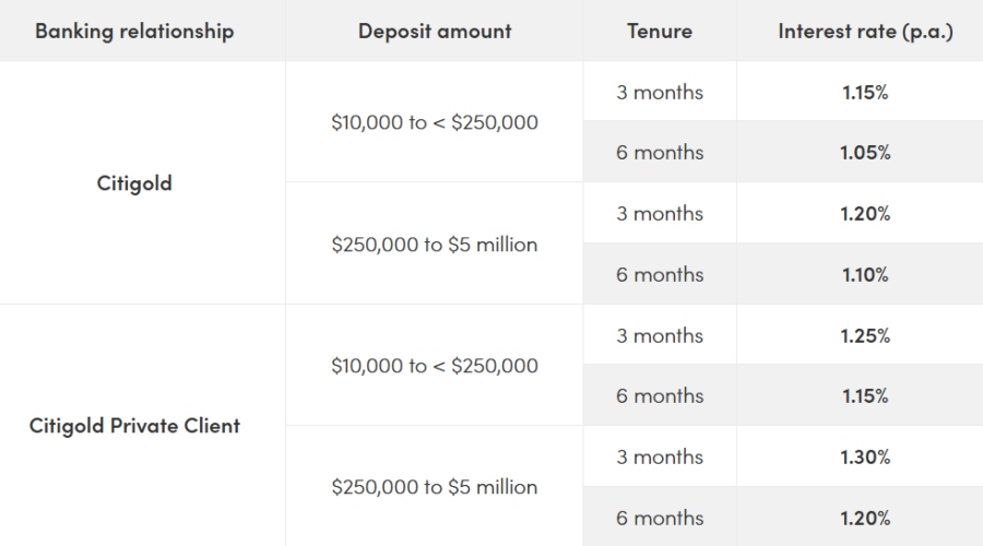 Note: The rates above are accurate as of March 3, 2026. Do check Citibank's fixed deposit promotion page for the latest rates in case Citibank makes changes.