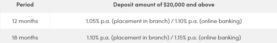 Note: The rates above are promotional rates subject to change at any time by OCBC. See OCBC's fixed deposit rates for the latest.
