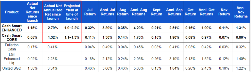In terms of performance, Endowus Cash Smart has actually outperformed the projected yield.