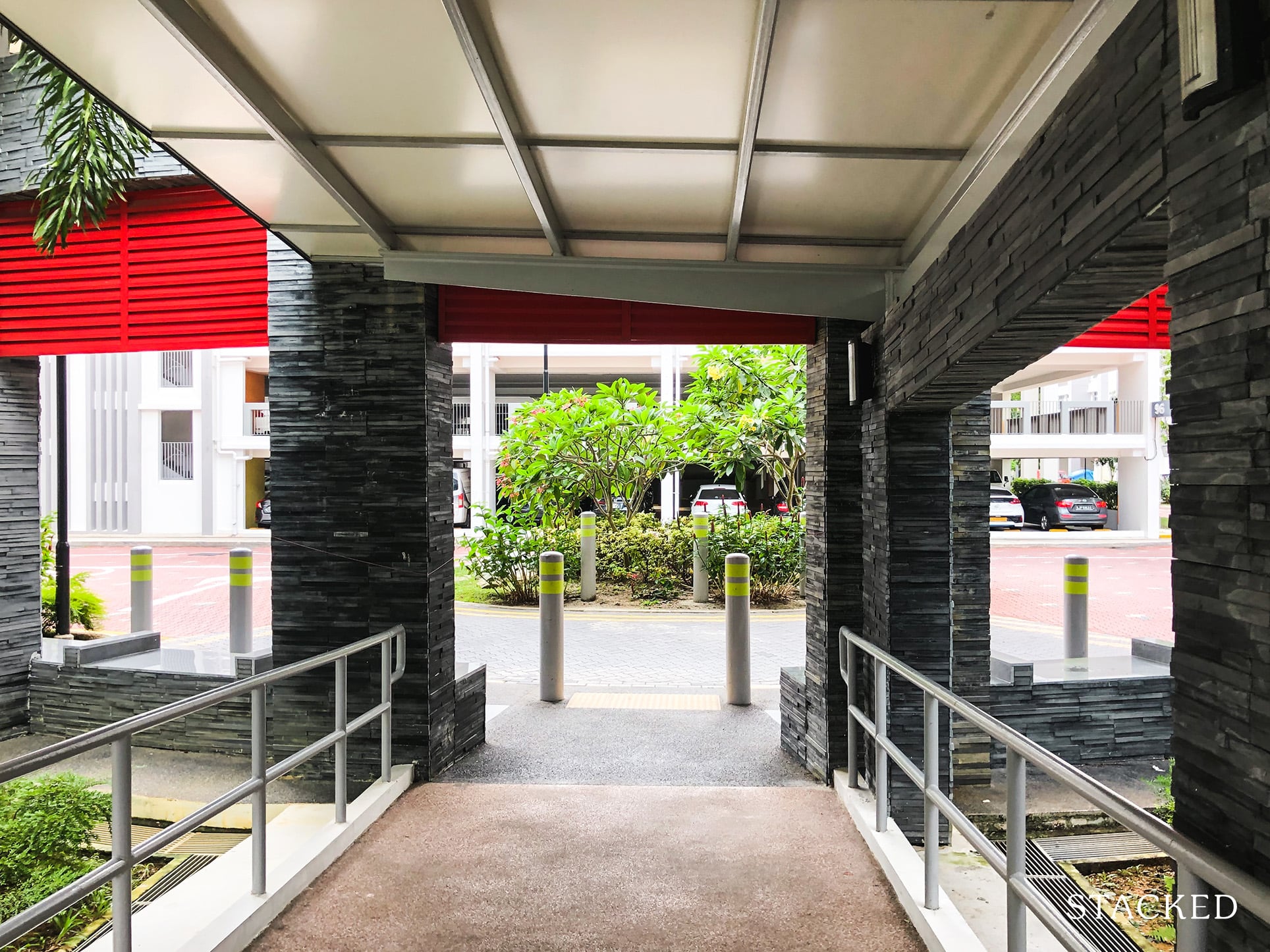 Coming in, you’ll find a mini-roundabout here which really makes it convenient for drop-offs as no 3-point turn is required. The roundabout is actually connected to two HDB car park entrances, with the other catering to the neighbouring HDB project.