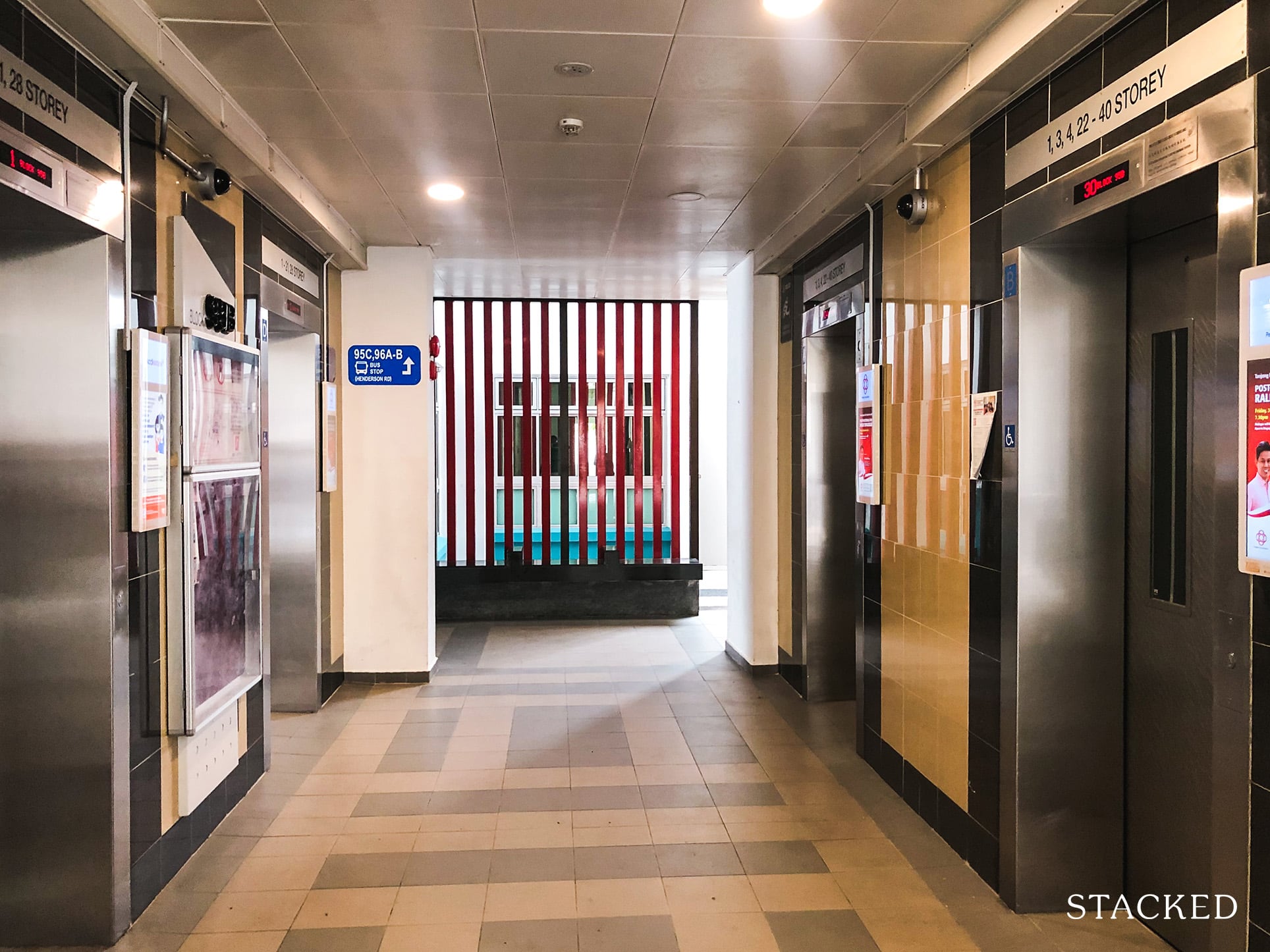 Each block here has four lifts, and the lift lobby is pretty standard too. You can see too that some units here lack privacy as it faces the lift lobby directly.