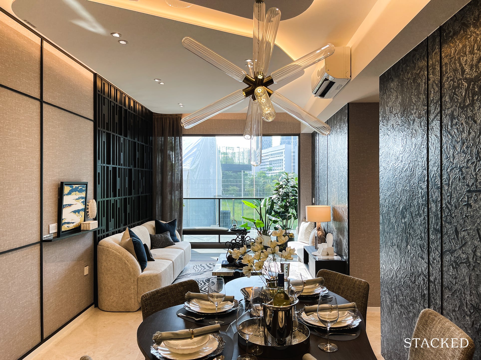 On paper, the dining space is actually not bad at all. The dining table used here is definitely very small, and not the most accurate representation of what a normal couple would want to use for daily dining.