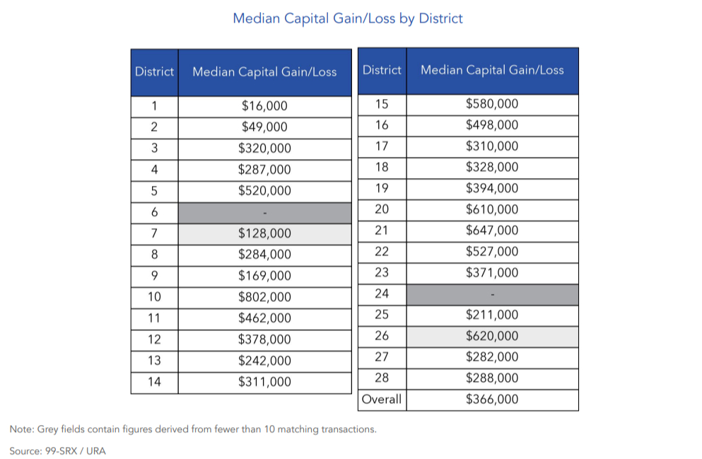 In contrast, District 1 (Boat Quay/Raffles Place/Marina) posted the lowest capital gain at only S$16,000.