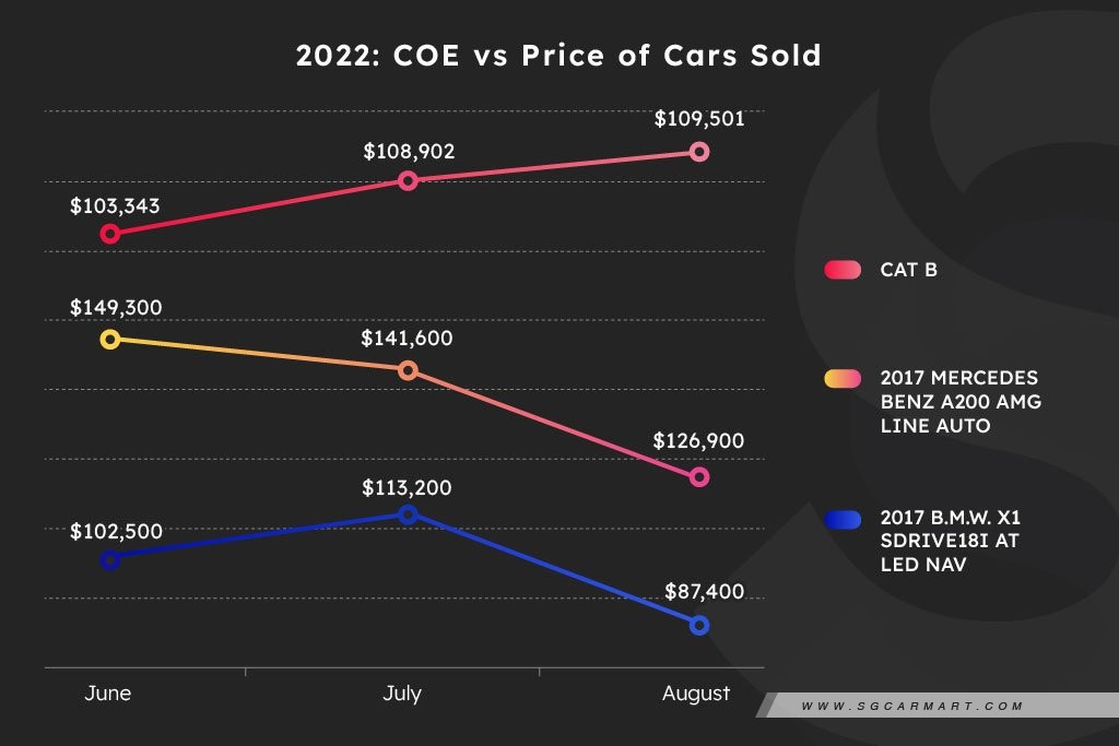 The trend has shown that the car resale price has dipped while the COE price has increased.