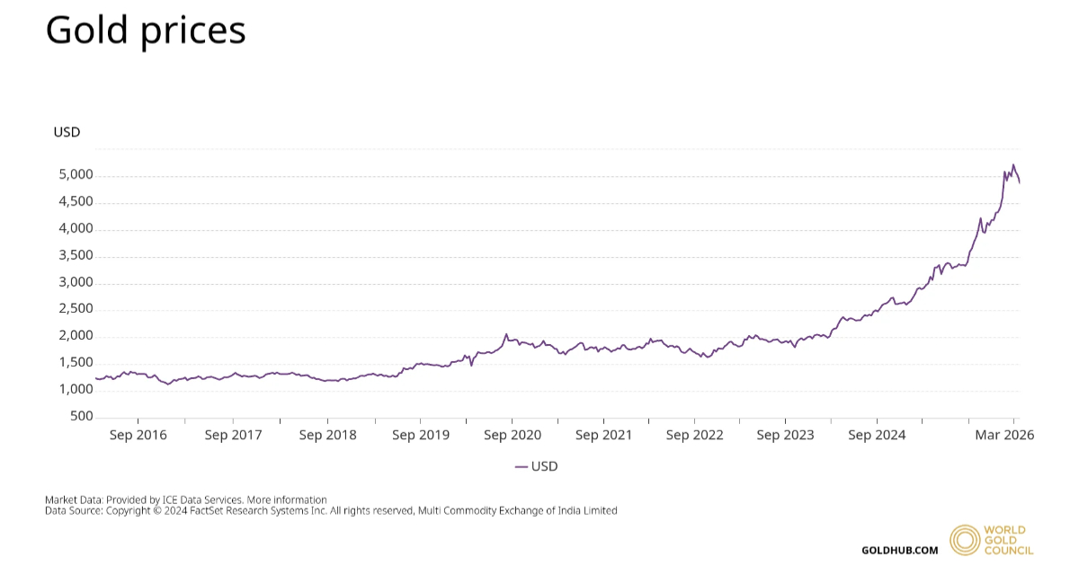 At the time of writing, the price of gold in USD/oz is $4,857.23.