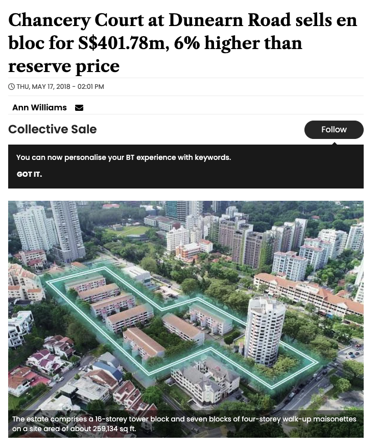 Today, they regret the decision as Chancery Court had already gone en-bloc in 2018. Their own project has seen several similar en-bloc attempts but failed each time.