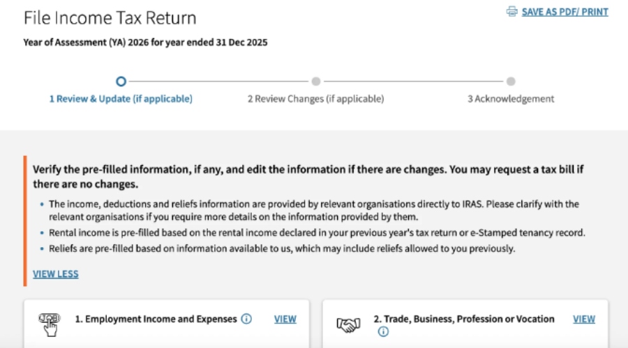 For those who are self-employed, be it partially or fully, you'll need to go the DIY route. Please follow this guide by IRAS to help you manually enter your income for YA2026.