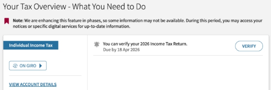 March 2026 onwards: Most taxpayers will receive their Notice of Assessment. It includes the amount of income tax to be paid in full within one month via GIRO, AXS station, or Internet Banking. Tip: You can pay via monthly GIRO instalments too. When you will receive your Notice of Assessment depends on your filing status: