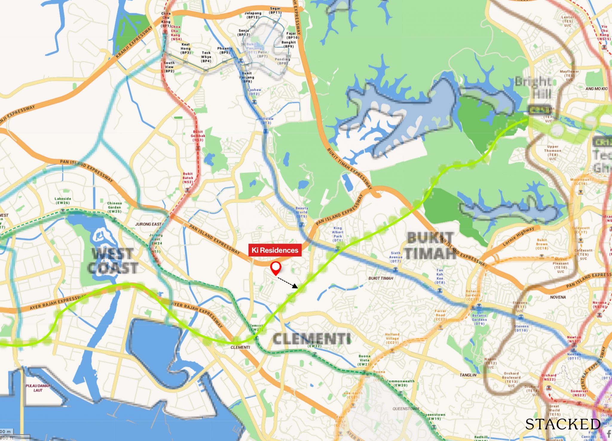Right off the bat, you will notice that Ki Residences is located a distance away from the other D21 new launch projects, which are generally within 15 mins wallking distance to either Beauty World or King Albert Park MRT stations. Instead, being situated in the Sunset Way landed enclave, Ki Residences is closer to Clementi and Holland Village.